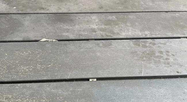 Загрязнения в порах. Чистка щеткой и специальным очистителем для декинга.