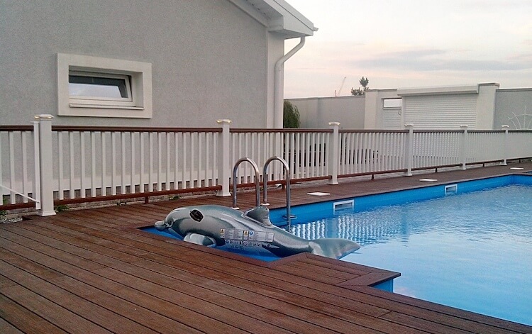 Пустотелый декинг вокруг бассейна должен иметь толстые стенки и качественный композит.